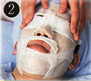 Sul viso gli viene spalmato un leggero strato di stucco da muratore