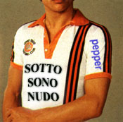 Uno stile deciso, chiaro ed esplicito, per il giovane uomo che vuole trasmettere tutta la sua naturalezza. Questa maglia, rivestita internamente di carta vetrata, è adattissima per chi vuole sollecitare nuovi incontri o per serate mondane con concrete prospettive di abbordaggio. Disponibile anche con l'interno in amianto. |
