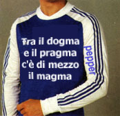 Per intellettuali distaccati, nichilisti e pilateschi. Questa e sarà esaltato da questa T-shirt vi connoterà subito come la persona più imperturbabile del gruppo, quella che mette a tacere ore di discussioni a vanvera con frasi incomprensibili ma lapidarie nel loro effetto. Di grande portabilità anche nelle grandi occasioni: esami di stato, matrimoni, scambi di pantofole. Disponibile anche con l'interno in cuoio. |